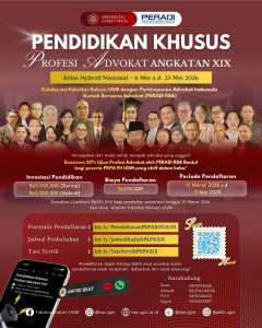 Berita [PENDAFTARAN PENDIDIKAN KHUSUS PROFESI ADVOKAT FH UGM ANGKATAN XIX TAHUN 2026 BERSAMA PERHIMPUNAN ADVOKAT INDONESIA RUMAH BERSAMA ADVOKAT (PERADI RBA)] Maret 16, 2026