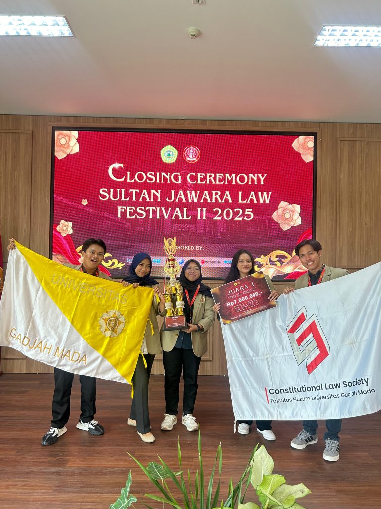 Delegasi Constitutional Law Society (CLS) Universitas Gadjah Mada yang diketuai oleh Maytri Gestart Ignatius, dengan anggota Ganeshara Jilan Emeri, Panji Alfian Triananda, Novianti Kusuma Dewa, dan Rachma Ananda Sulaiman, berhasil meraih Juara I (Pertama) dalam Kompetisi Legislative Drafting Tingkat Nasional Sultan Jawara Law Festival II Tahun 2025, yang diselenggarakan oleh Fakultas Hukum Universitas Sultan Ageng Tirtayasa.