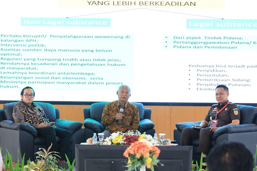 Para peserta yang terdiri dari para Jaksa di wilayah hukum Kejati DIY menunjukkan antusiasme tinggi selama sesi diskusi. Pertanyaan-pertanyaan yang muncul mencerminkan kebutuhan praktis untuk memperkuat sistem hukum yang responsif dan berbasis bukti (evidence-based). Kedua narasumber memberikan respons komprehensif dan aplikatif yang memadukan perspektif akademik dan implementatif.