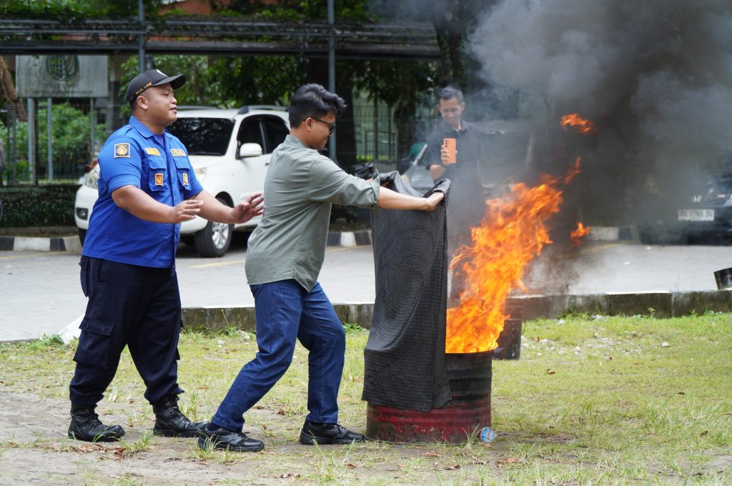 Setelah sesi teori, kegiatan dilanjutkan dengan praktik lapangan yang dipandu oleh tim Kedaruratan K5L UGM: Gunawan Praptono, Choirul Anwar, Ngabdan Endra Saputra, dan Masrukhan. Pada sesi ini, peserta diberi kesempatan mencoba secara langsung penggunaan APAR, mulai dari teknik mengarahkan nozzle, menjaga jarak aman, hingga mengenali jenis kebakaran yang dapat ditangani oleh media pemadam tertentu. Peserta juga diberi kesempatan mencoba memperagakan teknik pemadaman yang benar dan aman, sehingga memperoleh pengalaman praktis yang sangat penting ketika menghadapi kondisi darurat.