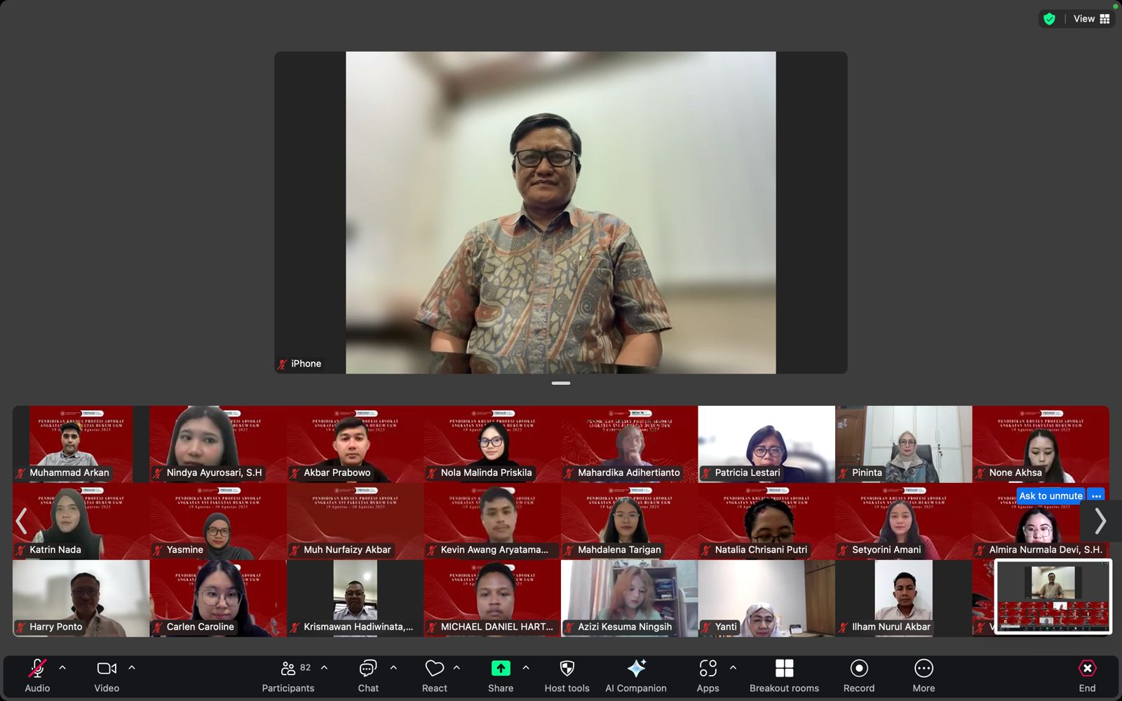 Pembukaan perkuliahan Pendidikan Khusus Profesi Advokat (PKPA) Angkatan XVI tahun 2025 telah diselenggarakan secara daring (online) pada