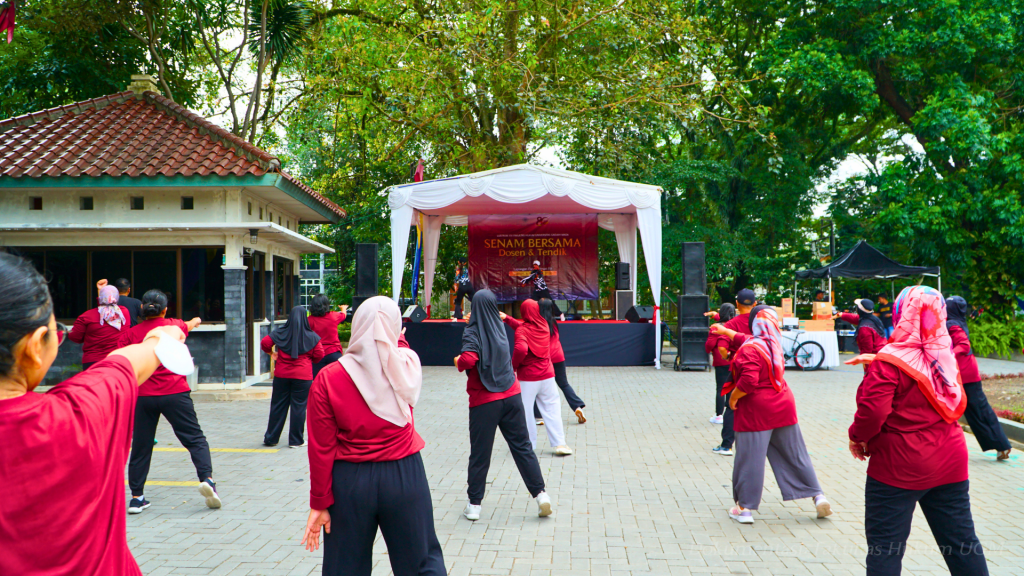 Setelah itu, kegiatan dilanjutkan dengan Senam Bersama yang diikuti oleh dosen dan tenaga kependidikan. Dipandu oleh instruktur senam, suasana kebersamaan dan antusiasme peserta tercermin selama jalannya kegiatan. Acara semakin meriah dengan adanya pembagian doorprize saat sesi sarapan bersama. Beragam hadiah menarik dibagikan kepada peserta, mulai dari perabot rumah tangga, televisi, tablet, hingga sepeda.