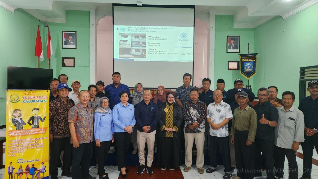 Selasa (27/1/2026), Fakultas Hukum UGM melalui Unit Kerja Pusat Konsultasi Bantuan Hukum (PKBH) bekerja sama dengan Kejaksaan Tinggi DIY telah sukses melaksanakan kegiatan Penyuluhan Hukum “Suluh Praja” di Kantor Kalurahan Hargobinangun, Kec. Pakem, Kab. Sleman, Provinsi DIY. Penyuluhan hukum ini bertujuan untuk memberikan wawasan dan pengetahuan hukum kepada para peserta yang hadir, yaitu Perangkat Kalurahan serta masyarakat sekitar, tentang isu hukum yang kerap terjadi. Suluh Praja kali ini mengangkat tema “Waris dan Koperasi Desa Merah Putih” untuk memberikan wawasan mengenai dasar-dasar hukum waris yang berlaku di Indonesia serta pengantar terhadap konsep dan prinsip dasar yang prelu diketahui dalam pengelolaan Koperasi Desa Merah Putih.